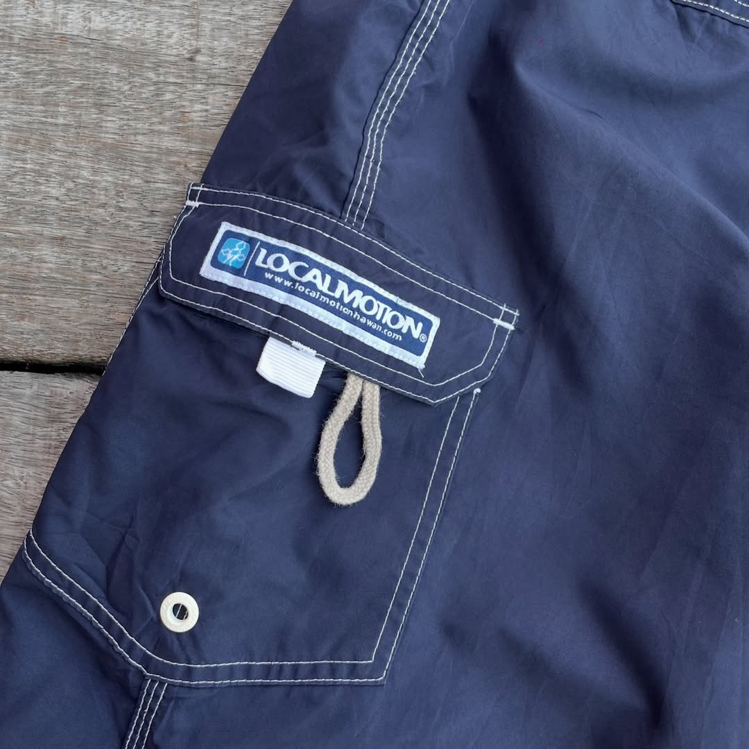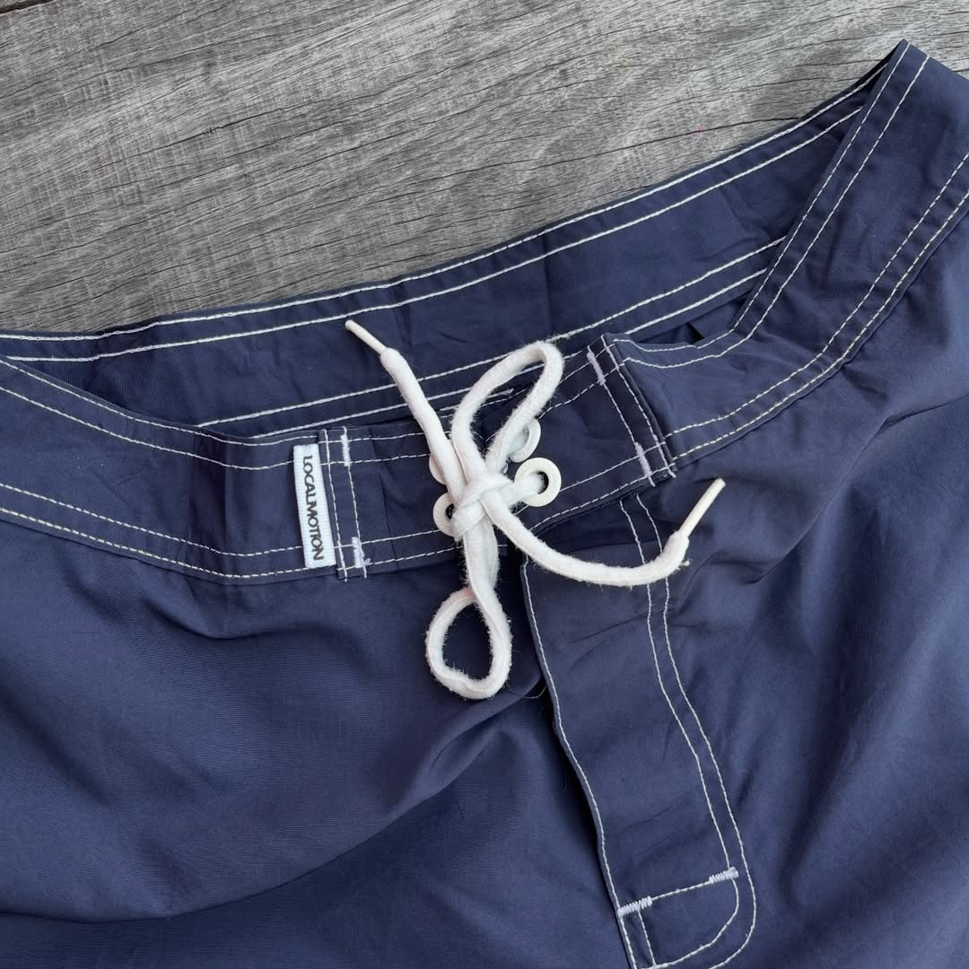 Local Motion board shorts แบรนด์ California USA กางเกงว่ายน้ำ เล่นเซิร์ฟ หรือจะแมชเป็นสไตล์ตัวเอง ตัวดีไซน์เรียบๆ ลักษณะเล่นเย็บด้วยด้ายสีขาว แพชโลโก้กระเป๋าข้าง